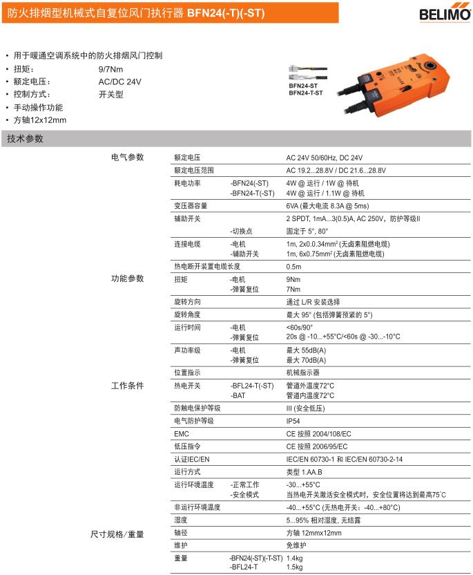 • BFN24防火排煙型機械式自復位風門執行器
