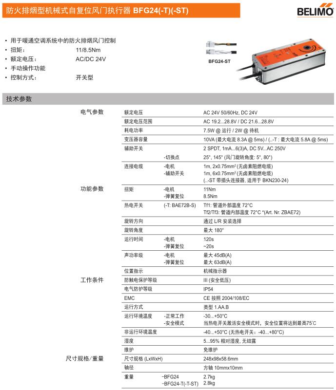 • BFG24防火排煙型機械式自復位風門執行器