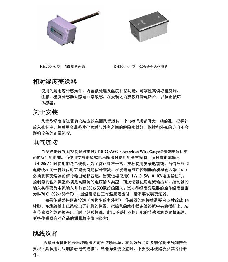 • 風管單濕度變送器RH200